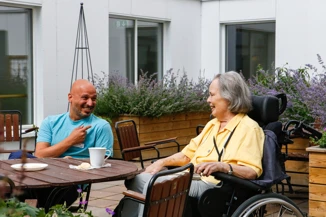 Varje enhet består av nio lägenheter och där finns ett gemensamt vardagsrum och matsal. Där finns även en stor balkong för frisk luft och sköna stunder i solen samt en fin innergård för fika och små promenader.